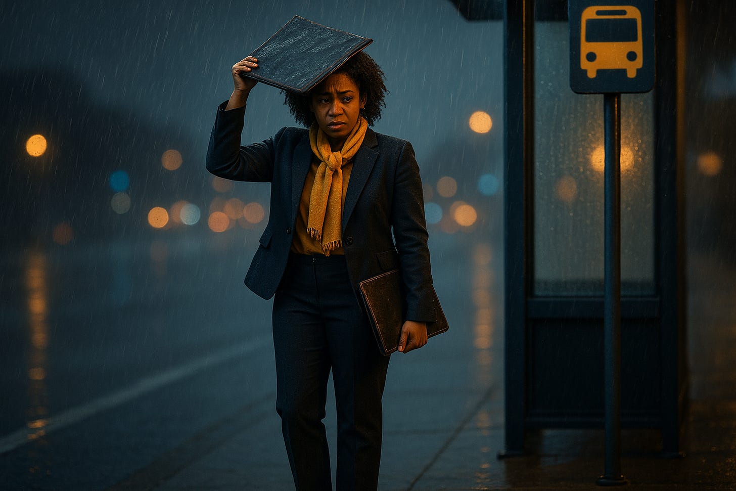 My hair had frizzed, my makeup threatened to slide, and every step carried the weight of bills unpaid and children waiting at home.
